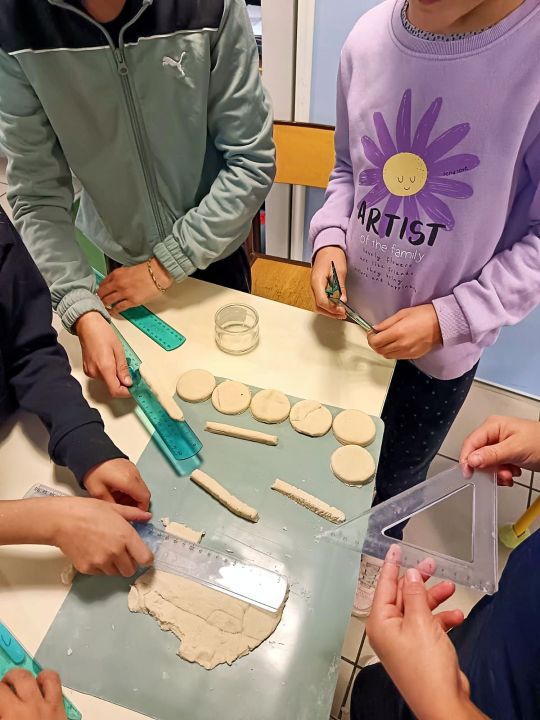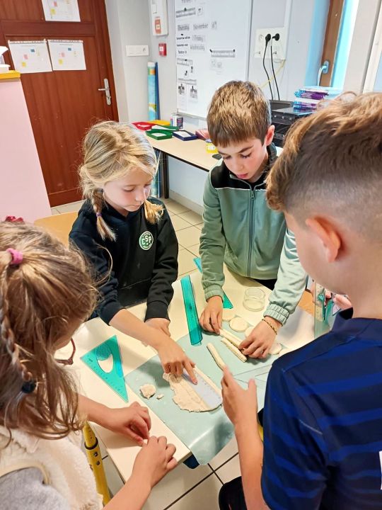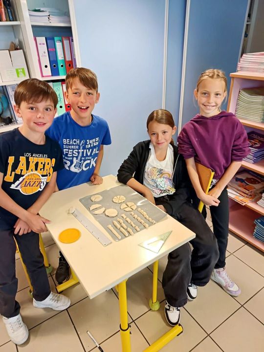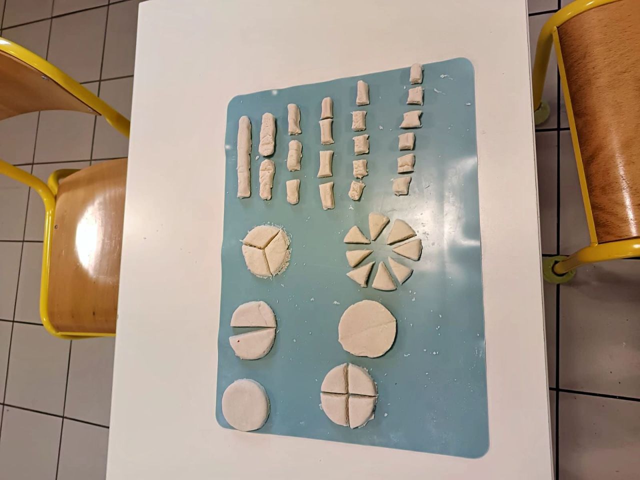 Les CM1 découvrent la notion de fraction en manipulant de la pâte à sel.