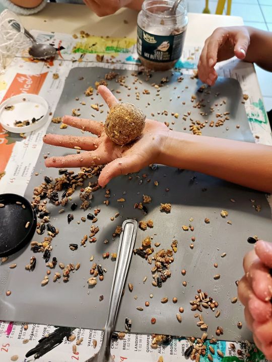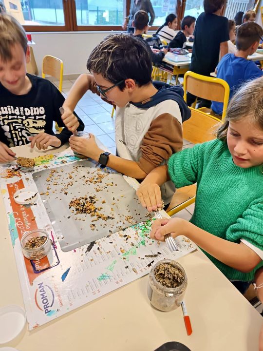 Les élèves de CM2 ont réinvesti leurs connaissances sur les fractions en fabriquant des boules de graisse pour les oiseaux.