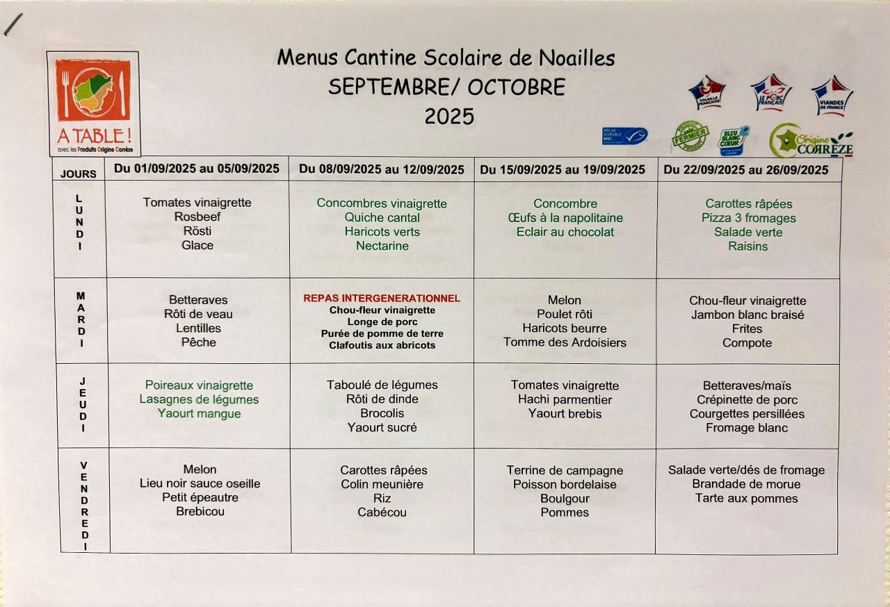 Menu de septembre et octobre