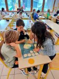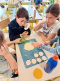 Les CM1 découvrent la notion de fraction en manipulant de la pâte à sel.